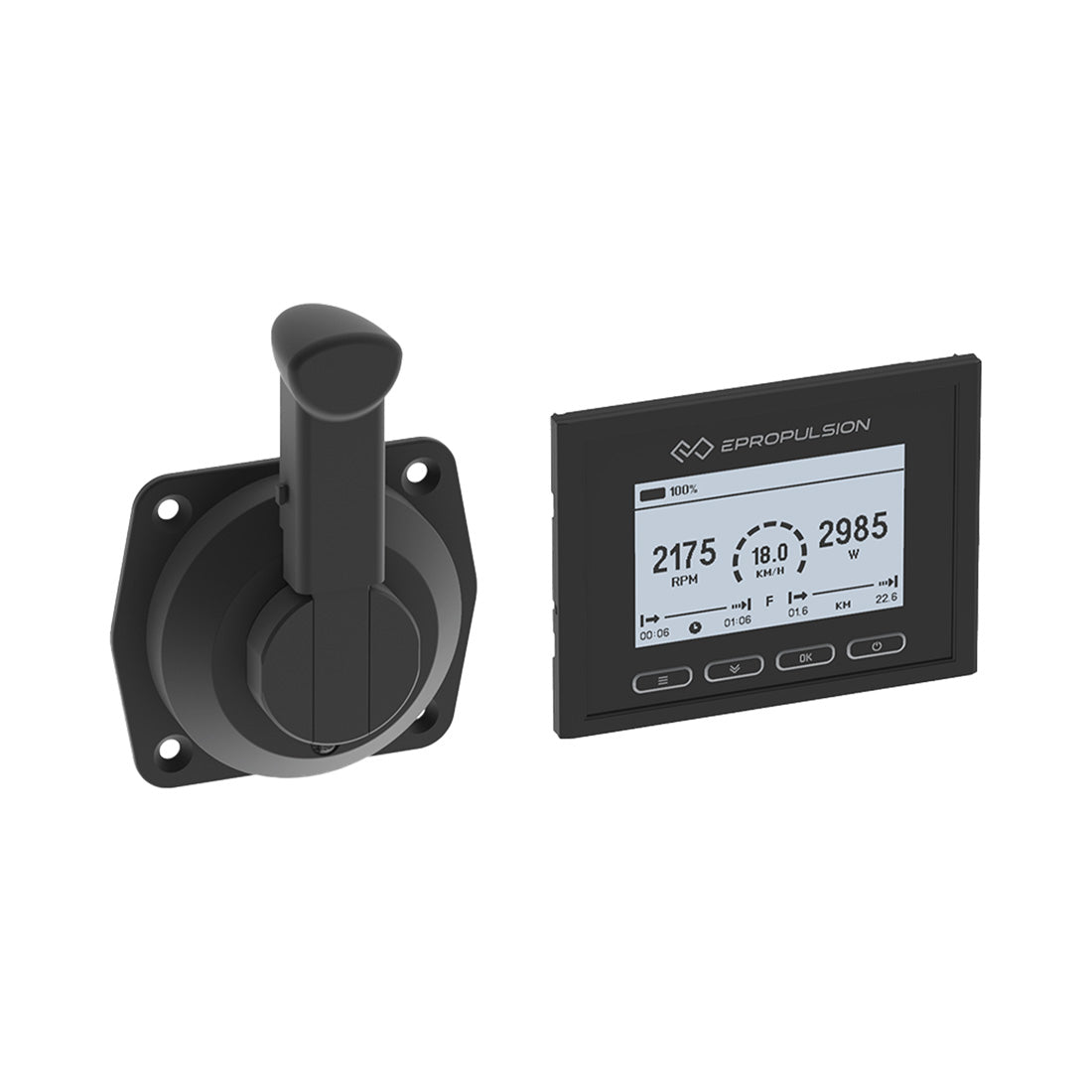 The Smart Side Mount Control is designed to provide seamless operation and real-time monitoring for ePropulsion’s Spirit, Navy, and Pod Evo motors. Featuring an independent display, it keeps you informed with up-to-the-minute motor and battery status, ensuring a smooth and efficient boating experience.